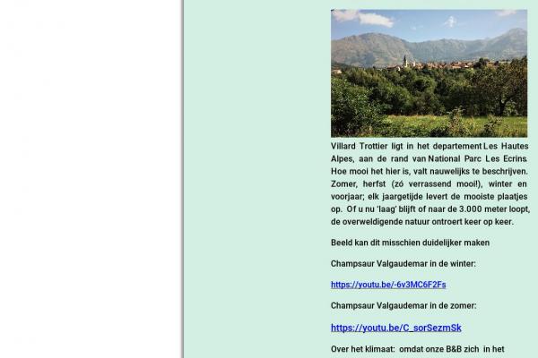 Henri en Els de Goede heten u van harte welkom in B&B MaisonNel. De voormalig graanzolder is verbouwd tot prachtige slaapkamer met grandioos uitzicht, overloop, badkamer en volop privacy. De omgeving is hier adembenemend mooi, ons huis grenst vrijwel aan Parc National des Ecrins. Wandelen, fietsen, zwemmen, alle vormen van wintersport, chillen; het kan hier allemaal. En, de zon schijnt hier vaak, het klimaat is hier heerlijk!!