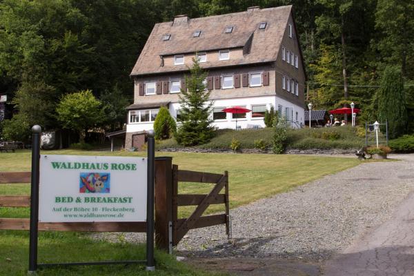 Op 471 hoogte, net boven Golddorf Fleckenberg, midden in de natuur en direct aan het startpunt van diverse wandelroutes “An der Bohre” ligt onze B&B Waldhaus Rose.
