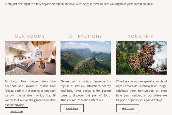 In het hart van de Afrikaanse bushveld, op korte afstand van het Kruger Park, Blyde River Canyon en vele andere bijzondere topattracties van Zuid-Afrika, is Bushbaby River Lodge dé exclusieve bestemming voor liefhebbers van natuur, rust, privacy en luxe.