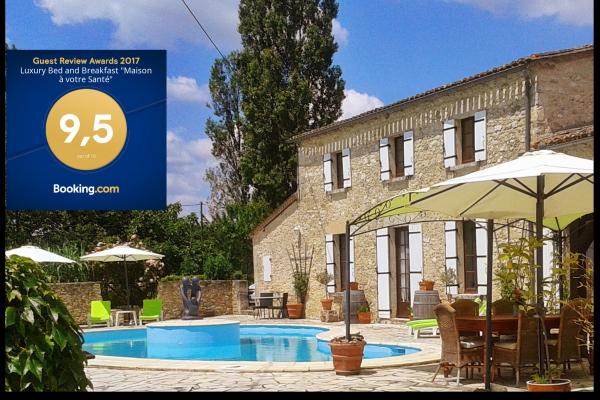 B&B Maison à votre Santé, op 35 min. van Saint-Emilion, in de Bordeaux wijn-regio vlakbij de Dordogne.